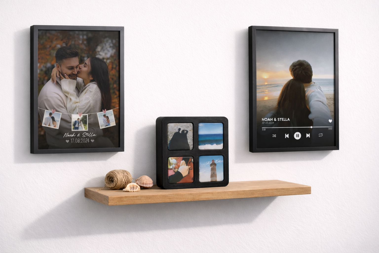 Criamos quadros e painéis de ímanes personalizados para que possas ter essas recordações sempre por perto, na parede, no escritório, na cozinha… onde fizer mais sentido para ti!